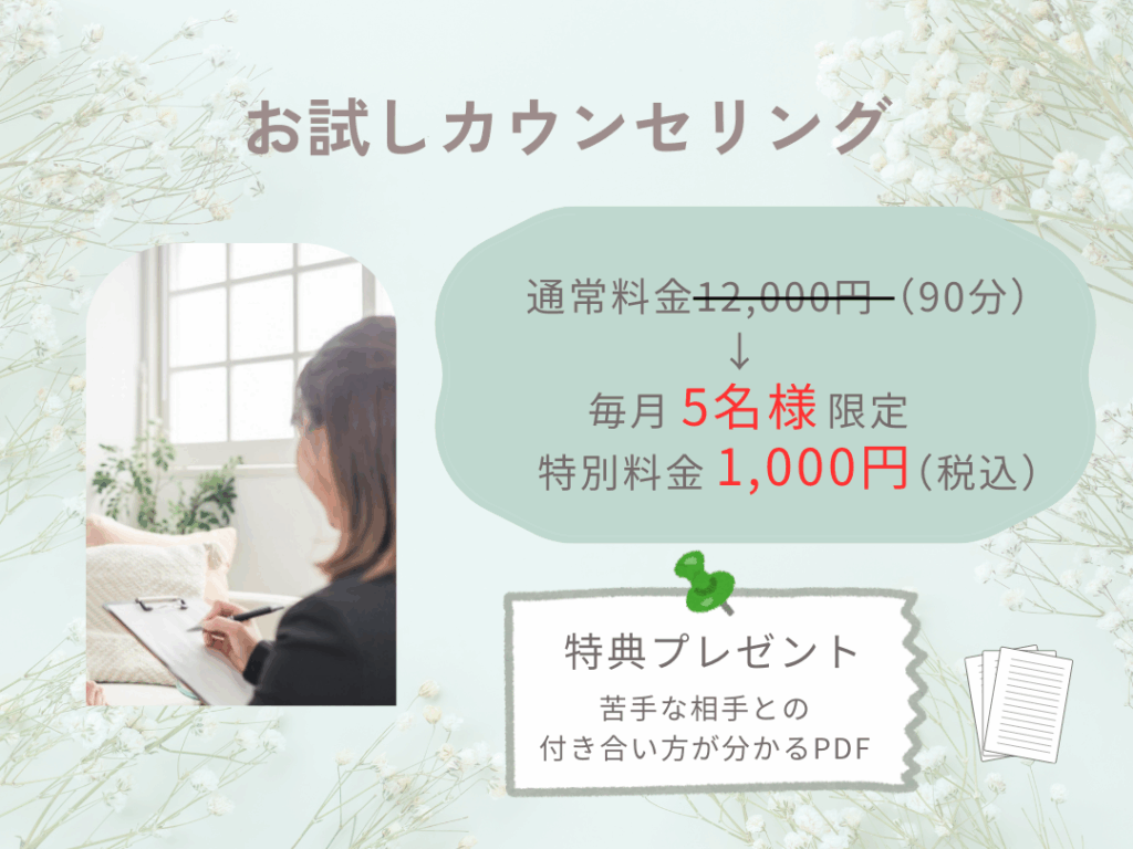 最初は緊張していた私にカウンセラーさんはじっくり耳を傾けてくれました。どんな気持ちも否定されないってこんなにホッとするんだと実感しました。